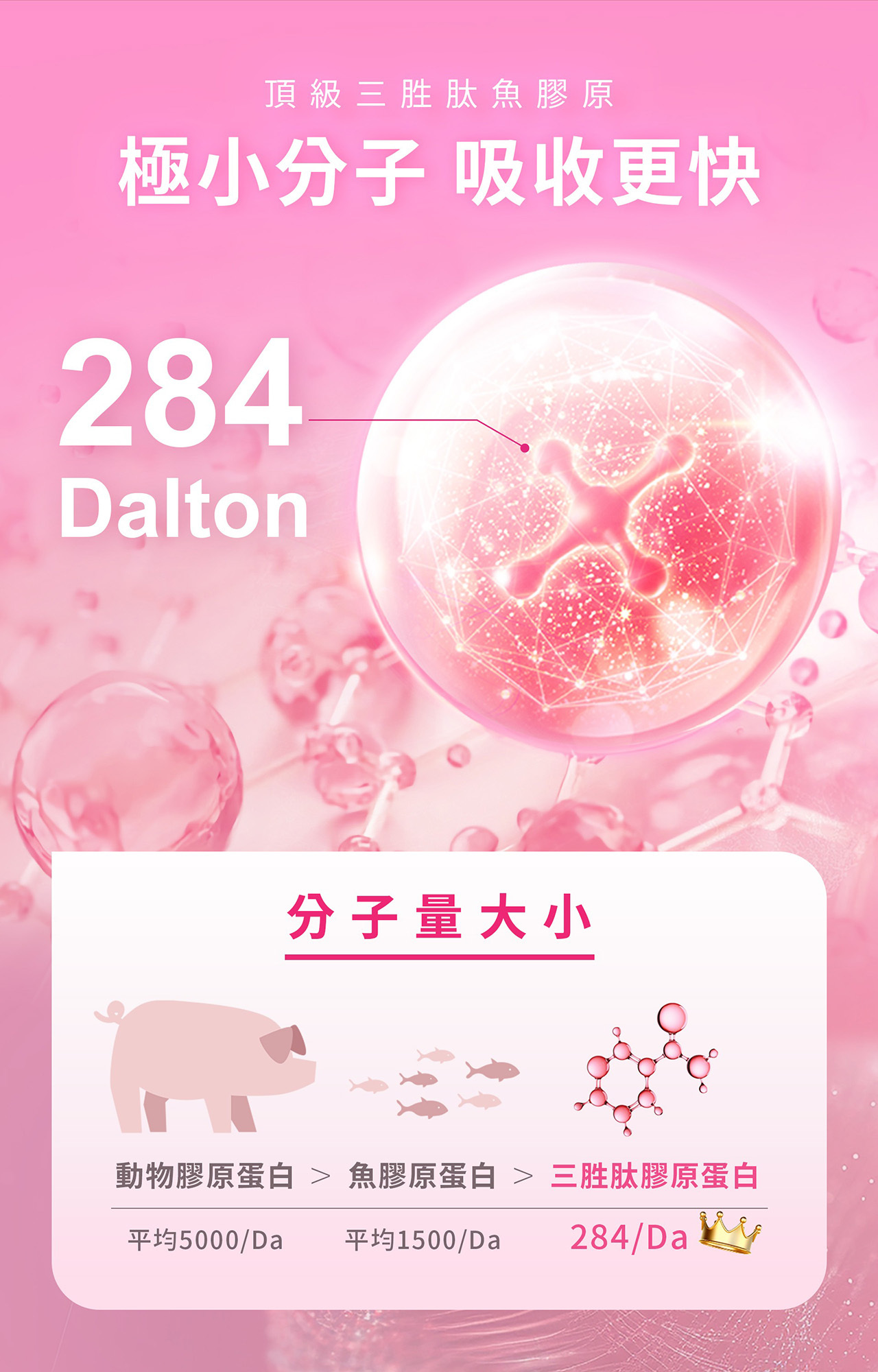 284Da(道爾吞)超小分子膠原,吸收效率UP!